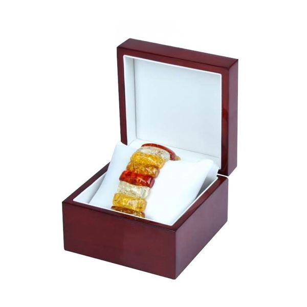 Elegantní dřevěná krabička pokrytá lesklým transparentním la...