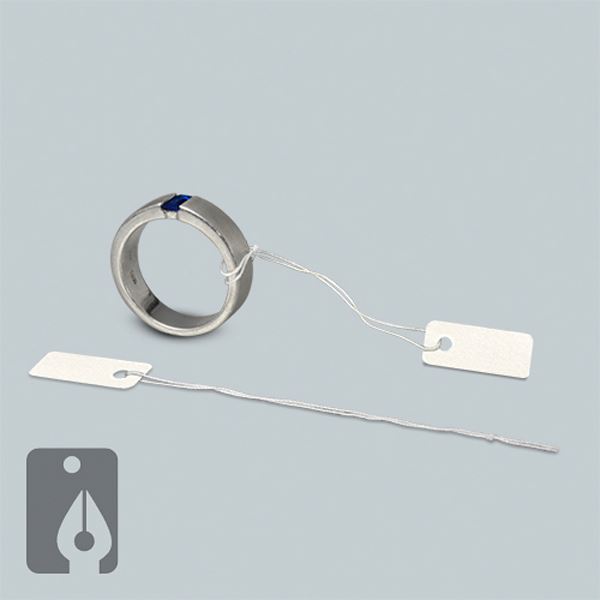 Štítky s nití, vyrobené z kvalitního a odolného papíru.