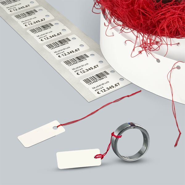 Bílé lesklé štítky s očkem vyrobené z polyethylenu. Štítky j...