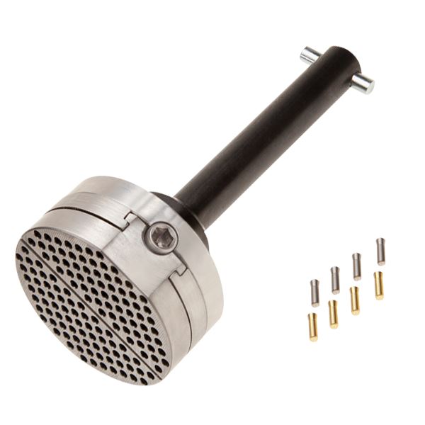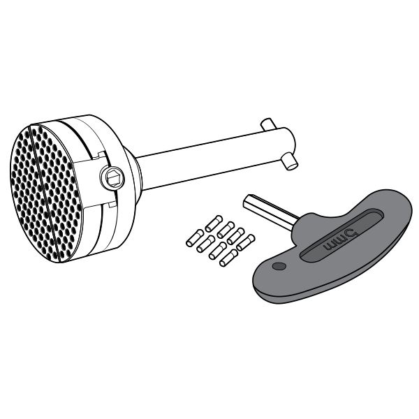 Součástí dodávky je svěrák s polohovacími kolíky BenchMate QC, 4 ocelové kolíky, 4 mosazné kolíky a 1 šestihranný klíč.