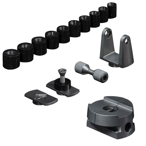 Sada obsahuje: Čelisti Jura Master, organizér a následující držáky QC: Horizontální vnitřní držák prstenů, vertikální vnitřní držák prstenů, 10 plastových upínacích pouzder a plochých svorek s drážkou.