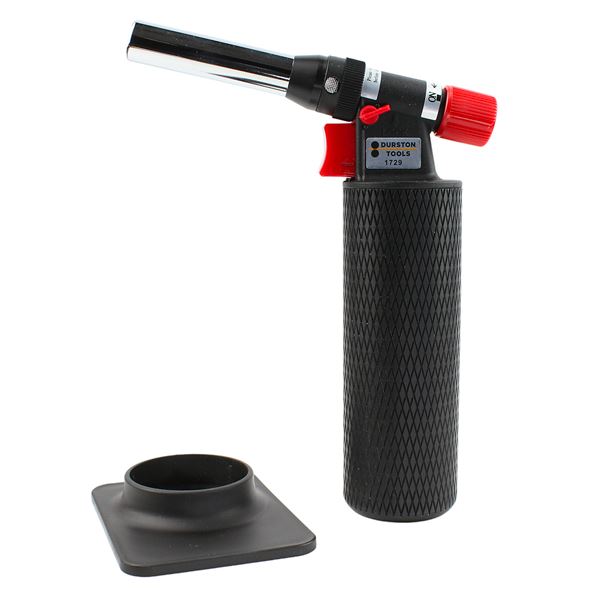 Tento všestranný hořák lze používat volně stojící nebo v ruce po sejmutí základny. Elektronické zapalování, flexibilní nastavení plamene a bezpečnostní pojistka usnadňují a zajišťují bezpečné používání tohoto hořáku (při používání tohoto výrobku dodržujte bezpečnostní pokyny).