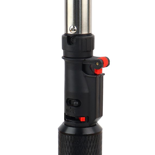 Tento všestranný hořák lze používat volně stojící nebo v ruce po sejmutí základny. Elektronické zapalování, flexibilní nastavení plamene a bezpečnostní pojistka usnadňují a zajišťují bezpečné používání tohoto hořáku (při používání tohoto výrobku dodržujte bezpečnostní pokyny).