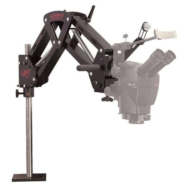 Stojan GRS Acrobat se těší důvěře ručních rytců a klenotníků již mnoho let a nyní získal přepracovaný štíhlý tvar, který se zvláště dobře hodí pro výkonný mikroskop Leica A60.